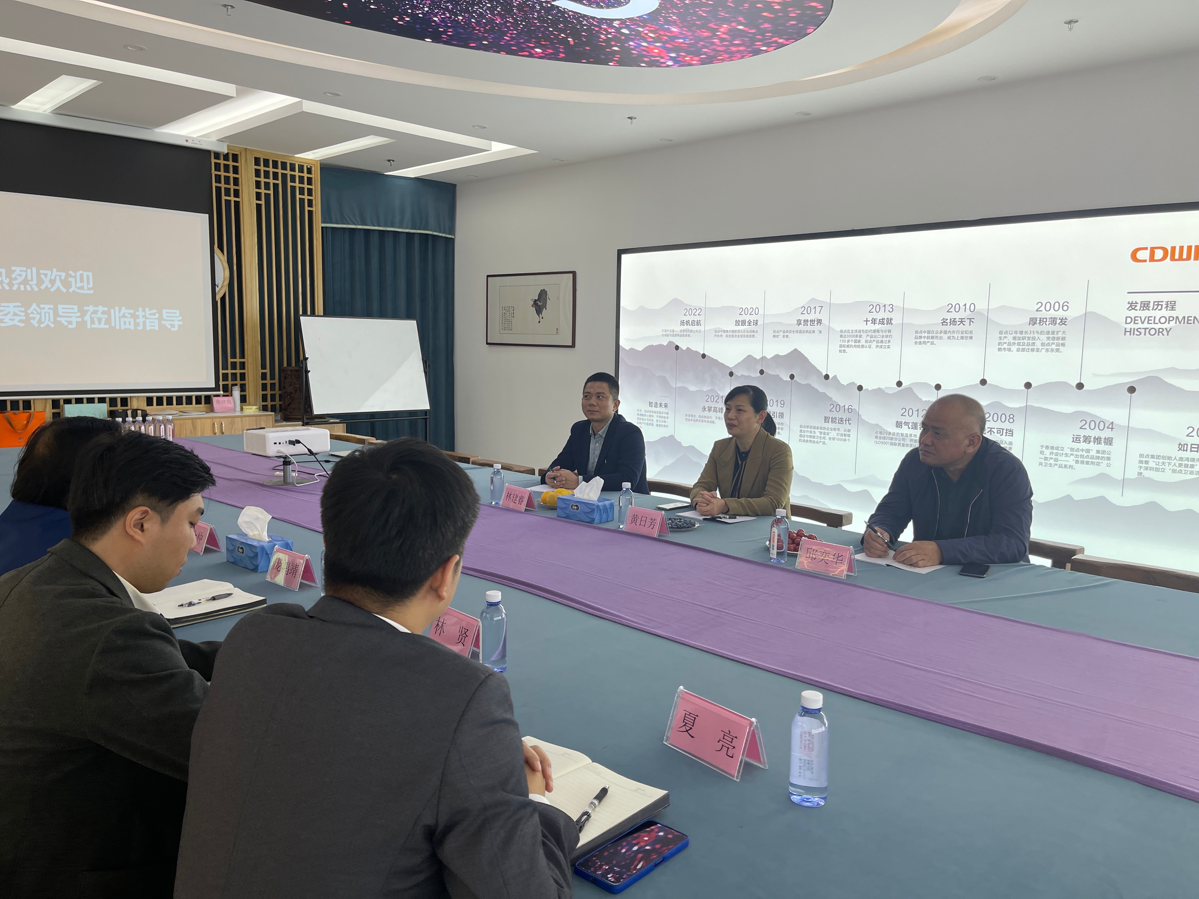 龐總向嘉賓們介紹創(chuàng)點的發(fā)展情況和企業(yè)文化,重點參觀了創(chuàng)點產品展廳,講解產品及服務特色,對政府領導提出的各類問題做出細致的解答,豐富的專業(yè)知識和精彩的講解,給參觀人員留下深刻的印象。