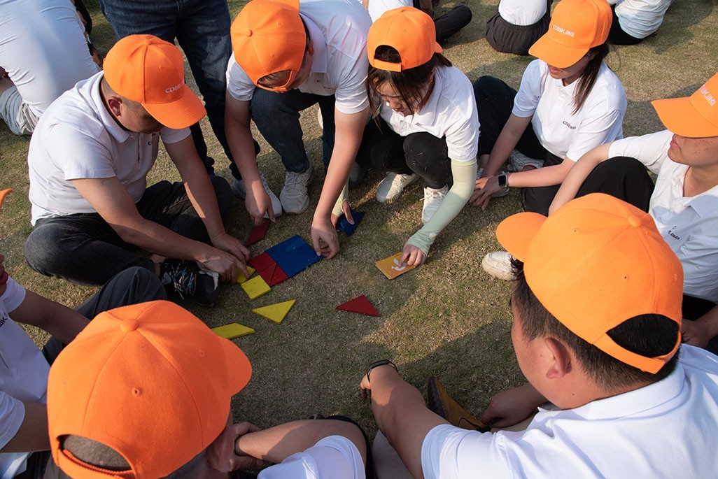 經過午間的休息和調整之后,大家在領隊的號召下繼續拓展活動,組員拼接塑料管片讓彈珠一路滾動直到落入前方指定紙杯中(珠行萬里),分組協作按照任務卡和圖形卡拼七巧板(戰國七雄),徒手翻越四米高墻(畢業墻),活動現場氣氛緊張,過程中大家雖屢屢受挫,卻空前團結,加油聲響亮,最終取得任務成功!
