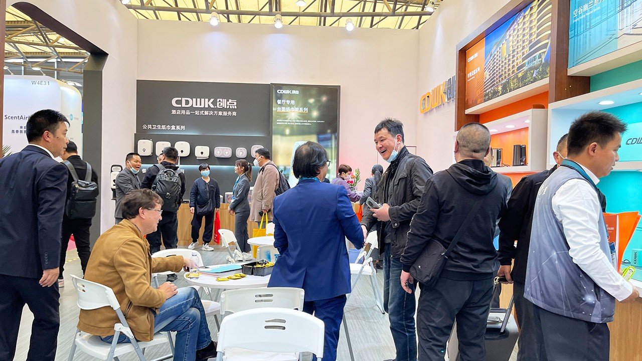 獨特的展位布置,CDWK創點新品齊亮相,CD-8278雙卷中心抽,餐廳紙巾盒系列,CD-6086智能香薰機,旅行茶具等產品深受觀眾青睞,成功圈粉大批經銷商和參展者。