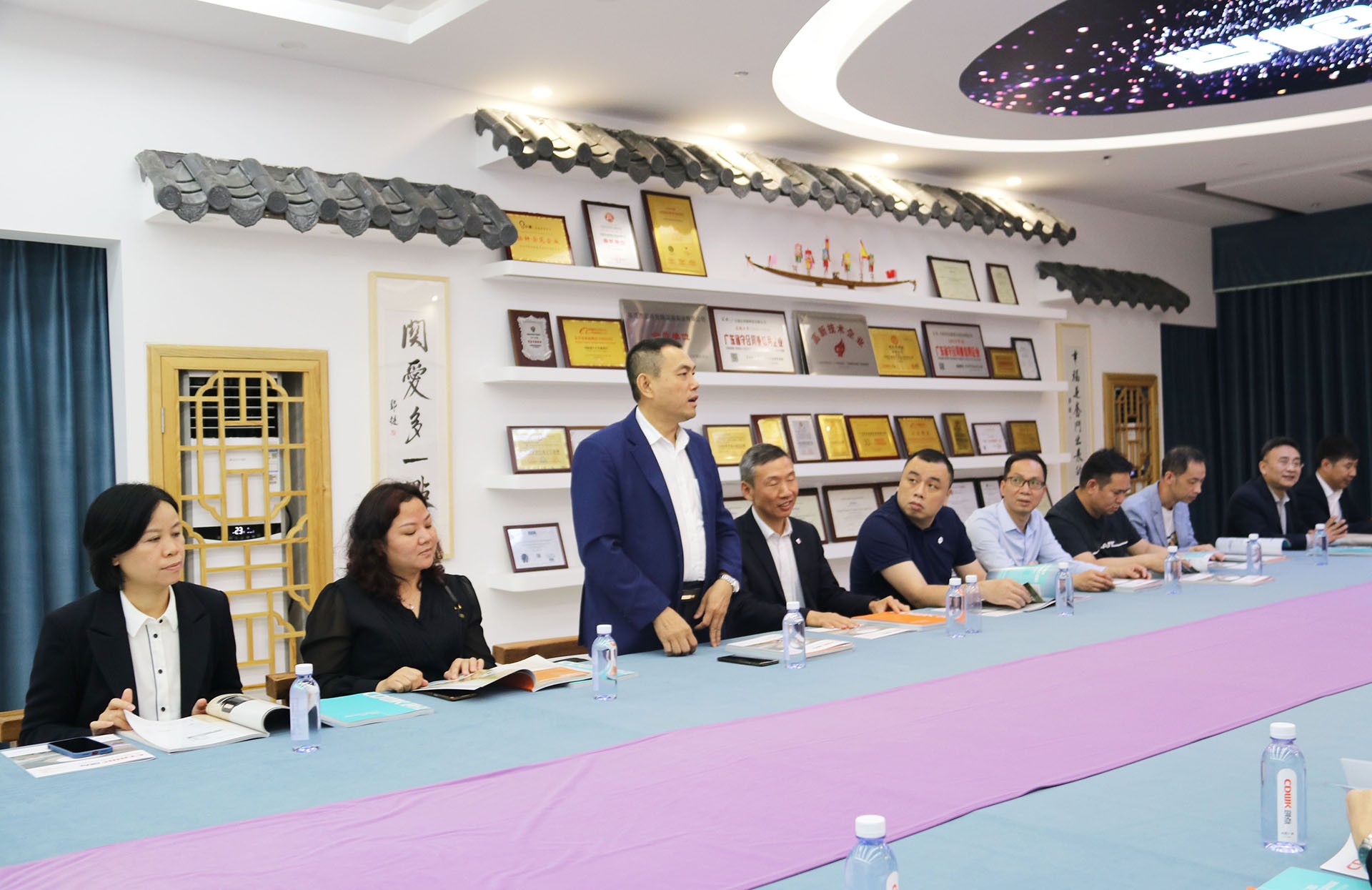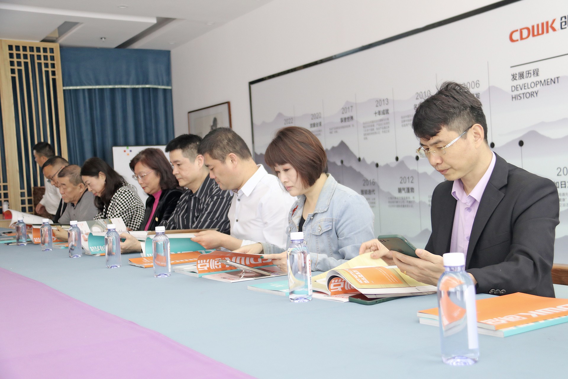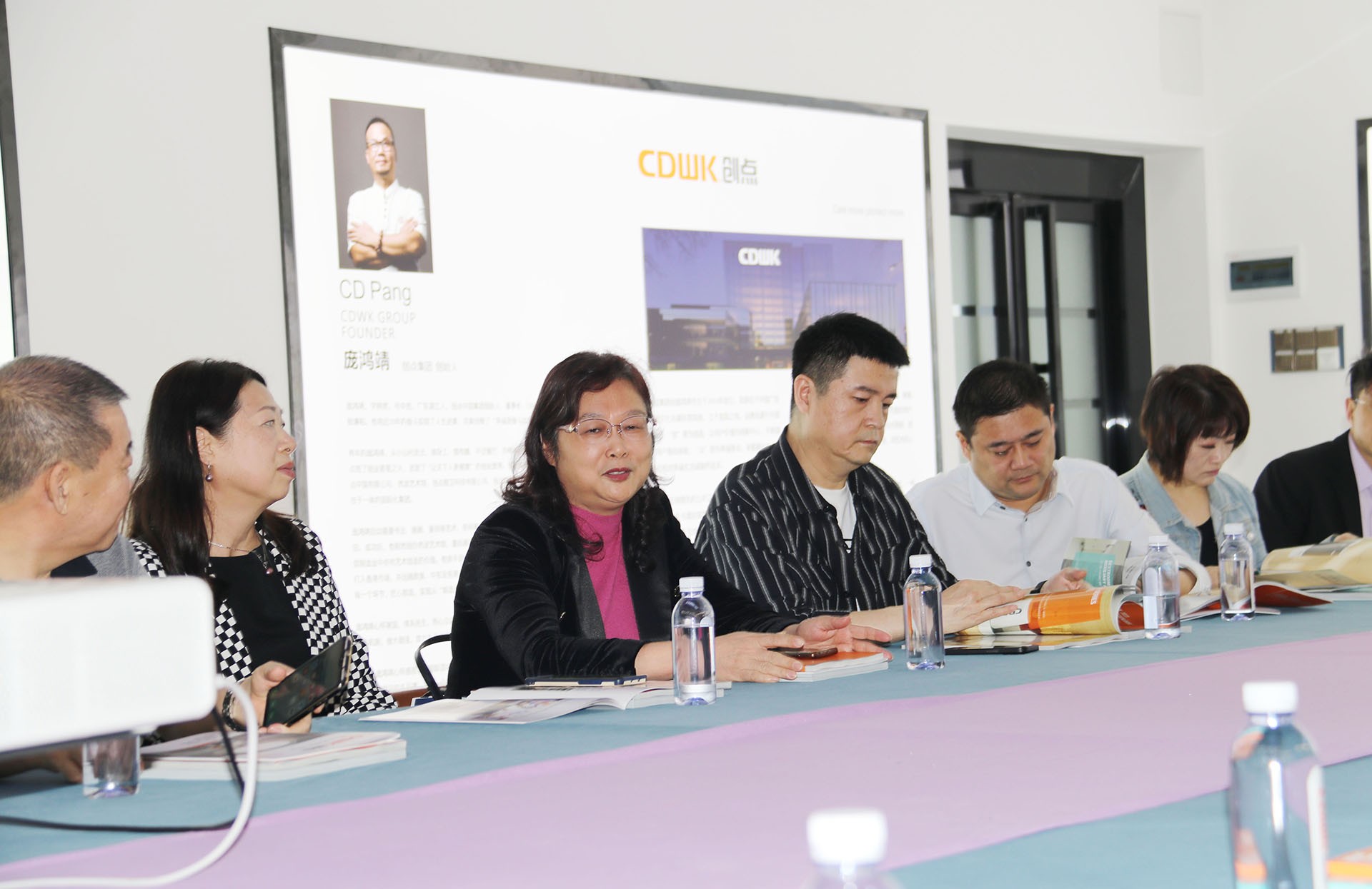 在文化會議廳,創始人龐總及高層管理者熱情接待,并對各位領導的到來致以誠摯的敬意,現場給大家準備了精美禮品和企業畫冊,和嘉賓們坐下來交流,相互認識,觀看創點企業宣傳片,和創點所經營的產品介紹,讓大家對創點有初步的了解認識。