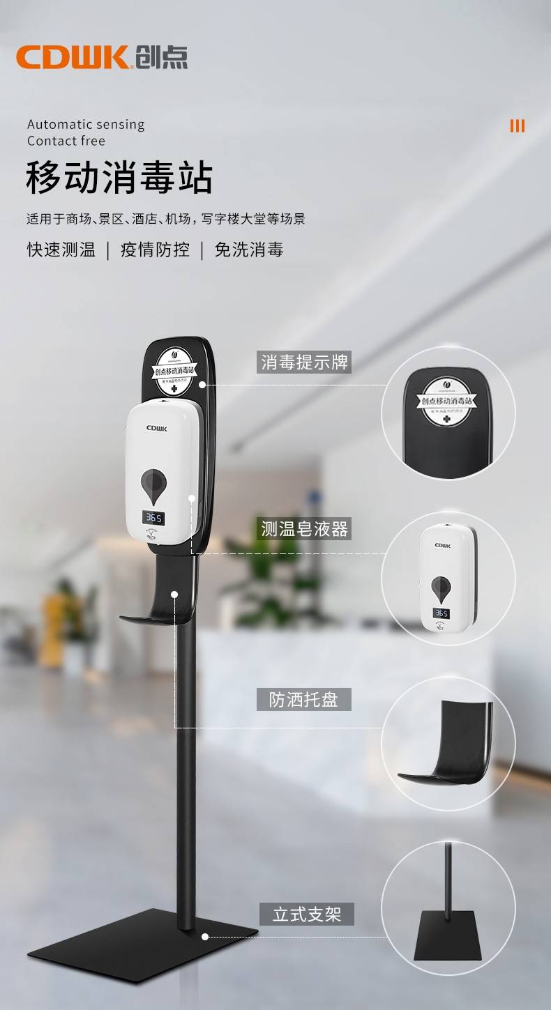并且,這款自動測溫皂液器還可以根據使用場景的不同,分成掛壁式和支架式兩種。在酒店房間、個人室內家居可以使用掛壁式,不占空間,便捷小巧。像酒店大堂、寫字樓和學校門口,則可以選擇支架款式,為人流量密集的提供更安全、健康、省時便捷的測溫消毒服務。
