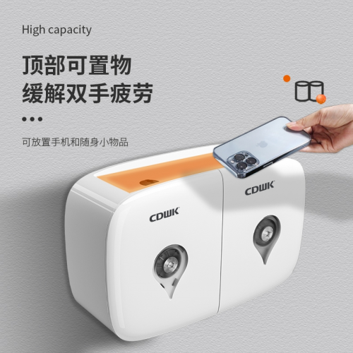 ABS堅固設計,觸感順滑,具備防水全方位保護、可清晰看到紙巾用量等人性化設計,環保又省紙!頂部加高設計,便于放置手機和隨身小物品,優化用戶體驗;更有鎖扣防盜設計加強管理,拒絕“伸手黨”。