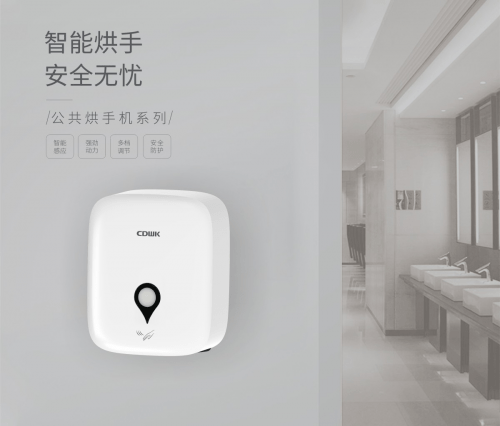 其公共烘手機重新定義公共衛生空間干手體驗,出風速度快,風力強勁,幫助用戶快速干手,減少逗留時間,有效烘干雙手。內置高效濾芯高效去除PM2.5、細菌等污染物,保證出風空氣清新,安全,干手更“凈”一步。選其用在商業場所公共衛生間,節省顧客時間也節省用電成本,更受青睞。